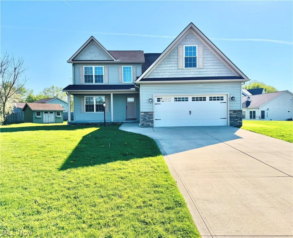 Don't miss this stunning 4-bedroom, 2.5-bath Colonial, perfectly situated on a quiet cul-de-sac in sought-after Perry Township. Step inside to find beautiful hardwood floors and a bright, open layout designed for both comfort and entertaining. The spacious living room features a cozy fireplace, creating a warm and inviting atmosphere. The kitchen is equipped with abundant cabinetry with soft-close features, ample counter space, and included appliances, flowing seamlessly into the dining area. Upstairs offers four generously sized bedrooms, highlighted by an impressive primary suite with a private bath, dual vanities, and a massive 12' x 17' walk-in closet complete with custom built-ins for exceptional storage. The unfinished basement with a full bath rough-in is ready for your personal touch?ideal for a future rec room, home gym, or media space. Relax on the covered front porch and enjoy the privacy of cul-de-sac living. Additional features include first-floor laundry, a 2-car attached garage, and a large matching shed for all your storage needs. Move-in ready and meticulously maintained?ask your agent about the standout storage feature in the primary closet!